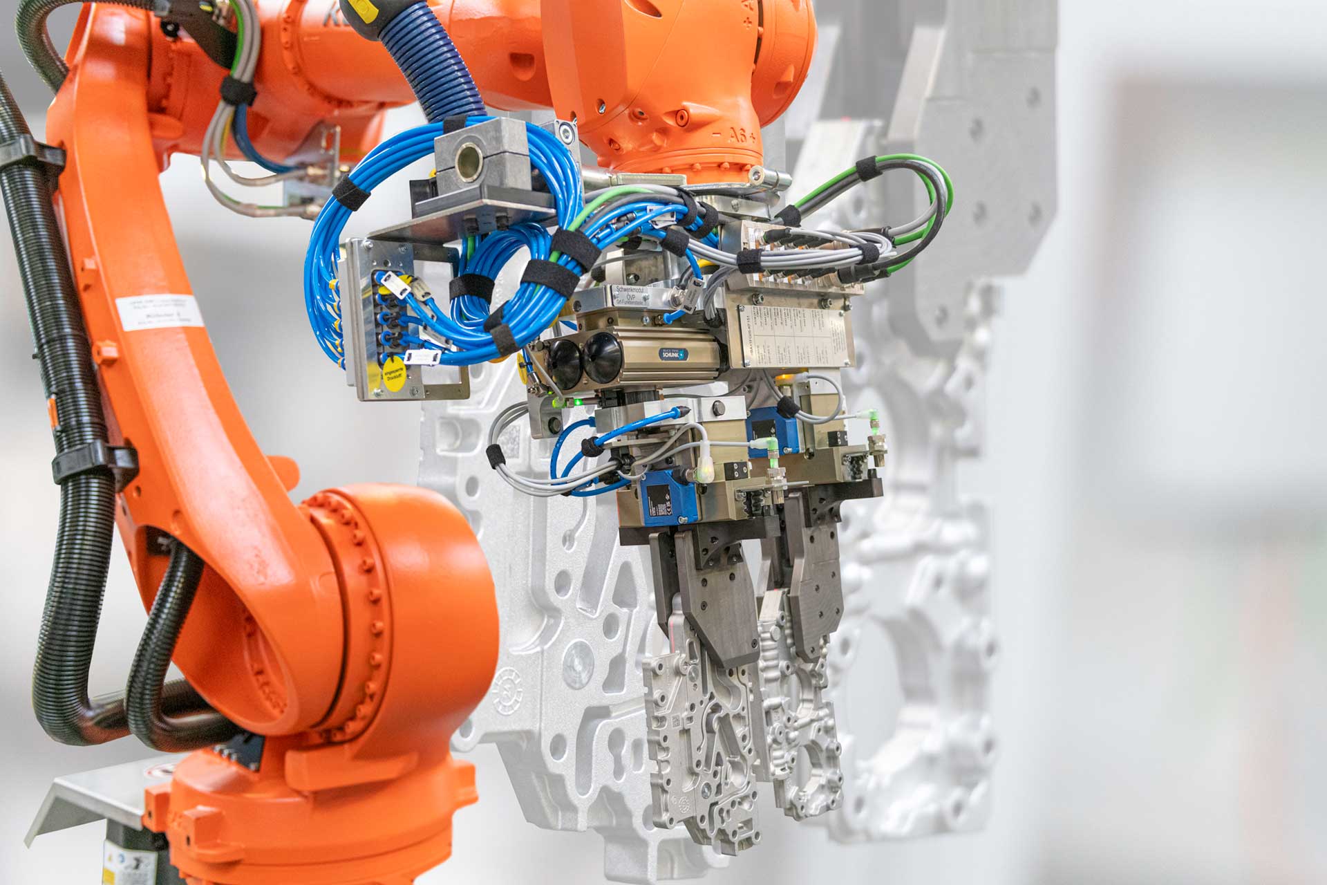 Zwei verschiedene Werkstücke – an einem Roboterarm