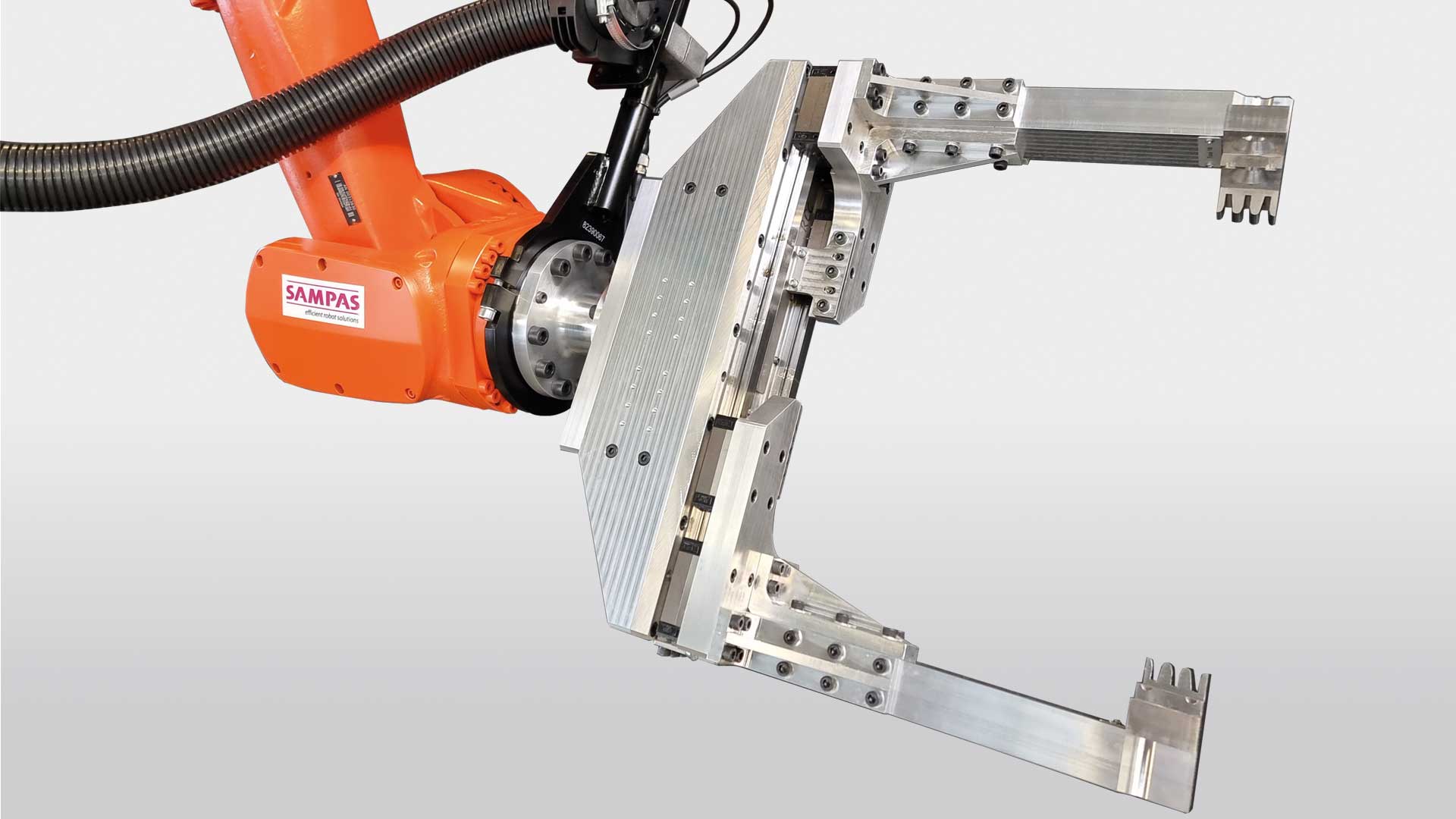 Dieser Greifer ermöglicht das Handling von Bauteilen bis zu 60 kg – selbst bei beengten Einfahrsituationen.